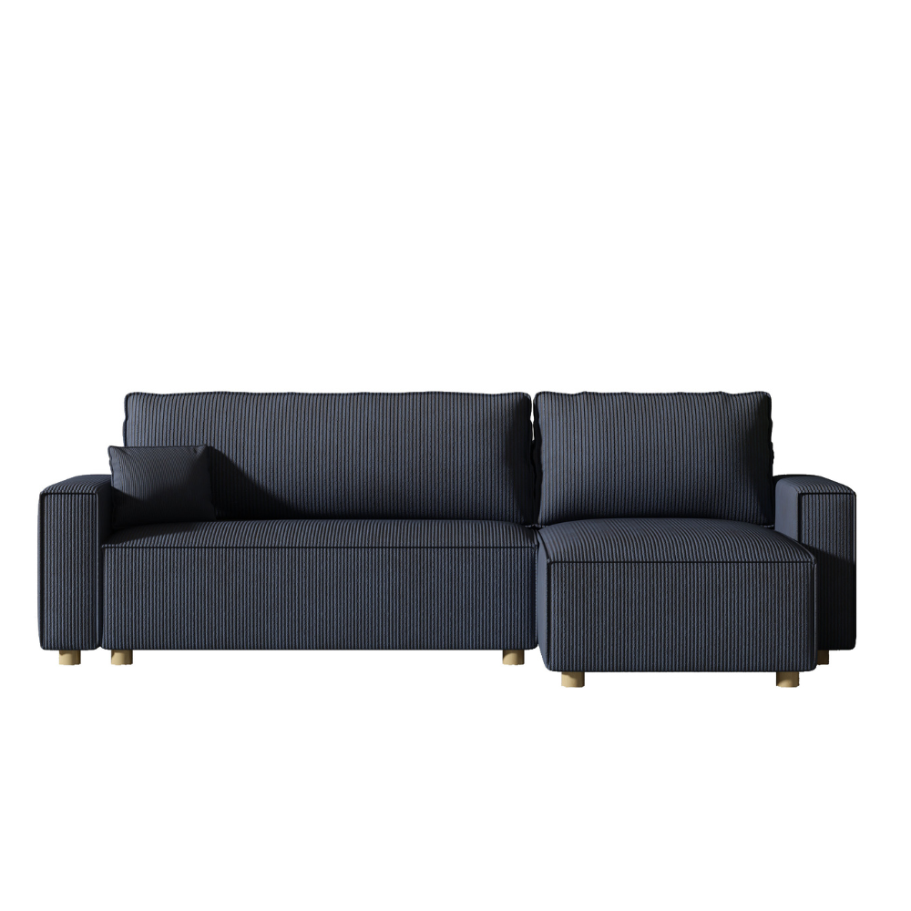 En termes de design, le canapé convertible présente des lignes épurées et contemporaines, des accoudoirs légèrement arrondis et des pieds en bois solides, apportant une touche de chaleur naturelle à l’ensemble.