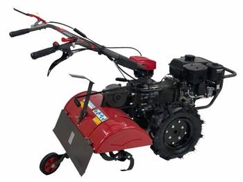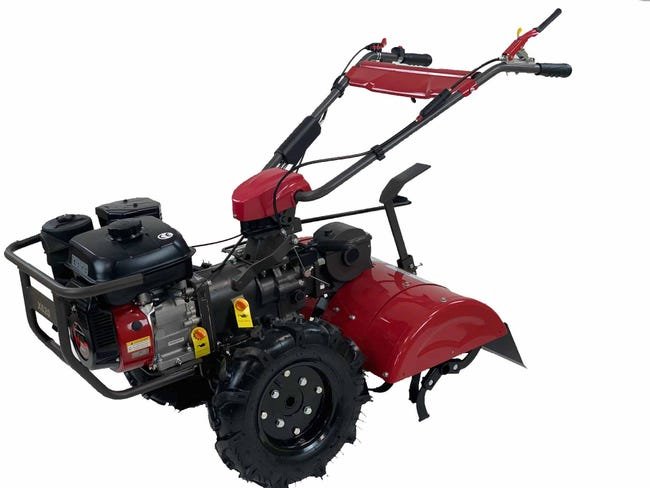 Rotovator – Motoculteur à fraises arrière contre-rotatives nouvelle génération ! Idéal pour cultiver facilement son potager. Il sera efficace dans tous les sols, du plus compact au plus lourd. Très facile à utiliser en toute sécurité, il vous rendra une terre finement émiettée jusqu’à 20 cm de profondeur. – 2 vitesses avant, neutre, 1 marche arrière. – Prise PTO permettant le désengagement des fraises. – Réglage vertical et horizontal (à 180°) du guidon par simple action sur la poignée (réglage ultra rapide en 2 secondes). – Rotation des 16 fraises arrières dans les 2 sens simultanément (Exclusivité ELECTROPOWER). – Réglage de la vitesse au guidon. – Sécurité « homme mort ». – Moteur 7CV Euro 5. – Boite de vitesses à engrenages, entrainement uniquement par pignons et chaines, pas de courroies. – Roue arrière de transport et béquille de profondeur. – Largeur total : 70 cm – Longueur total : 141 cm – Poids total avec emballage : 160 kg – Livré complet avec : roues agraires (Dimensions : 4.10/3.5 – 6)