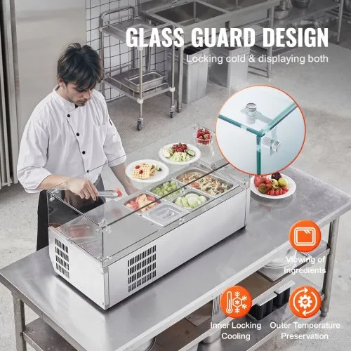 Station de préparation de pizza à salade réfrigérée de comptoir VEVOR 140 W garde en acier inoxydable CE