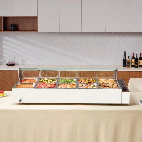 VEVOR Chauffe-Plat Buffet Bain-Marie Électrique 10 Bacs de 7,6 L Écran en Verre