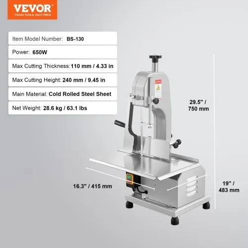 VEVOR Scie à os de boucher électrique commerciale scie à ruban 650 W en acier